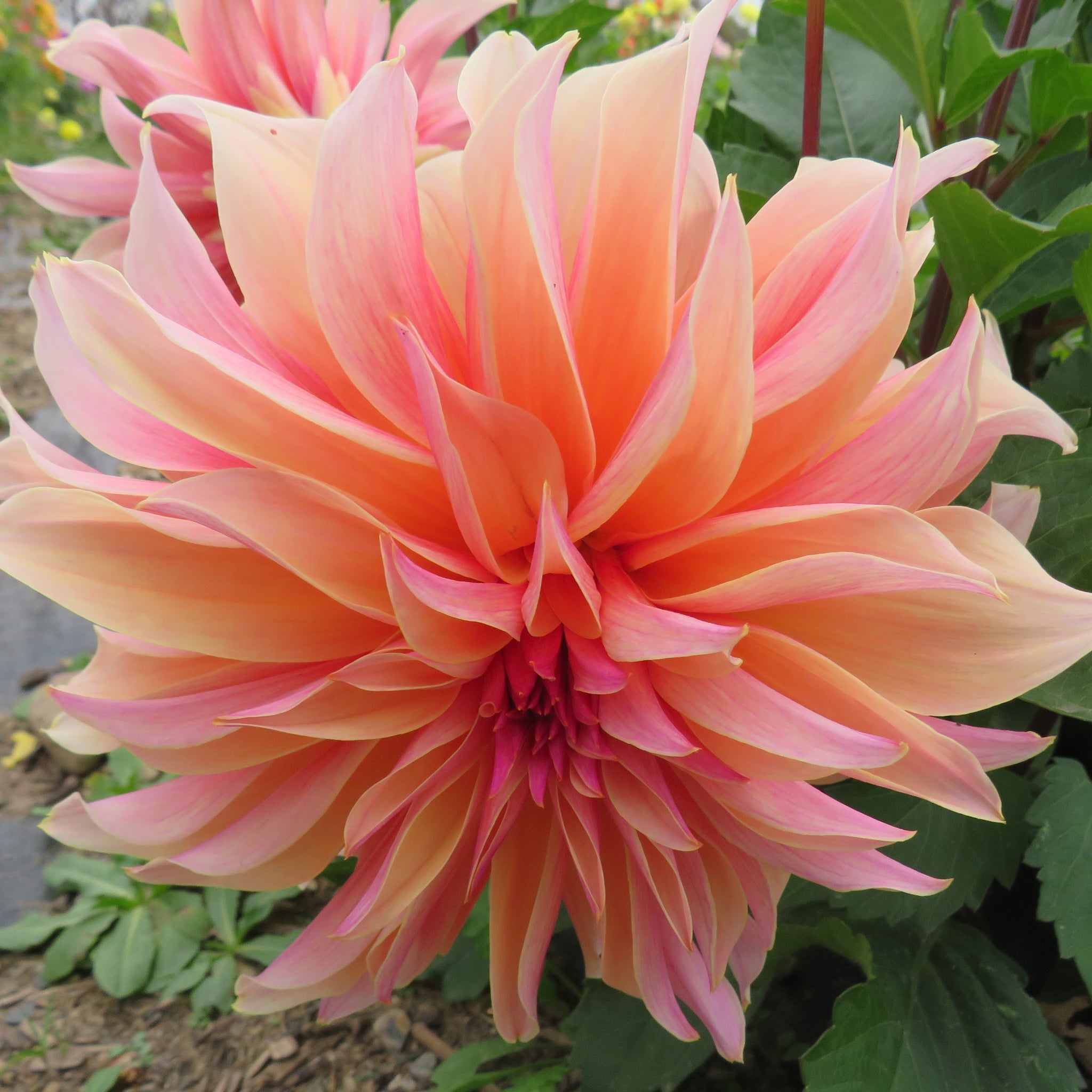 Petals of pink raspberry and peach create an unusual artistic bloom.